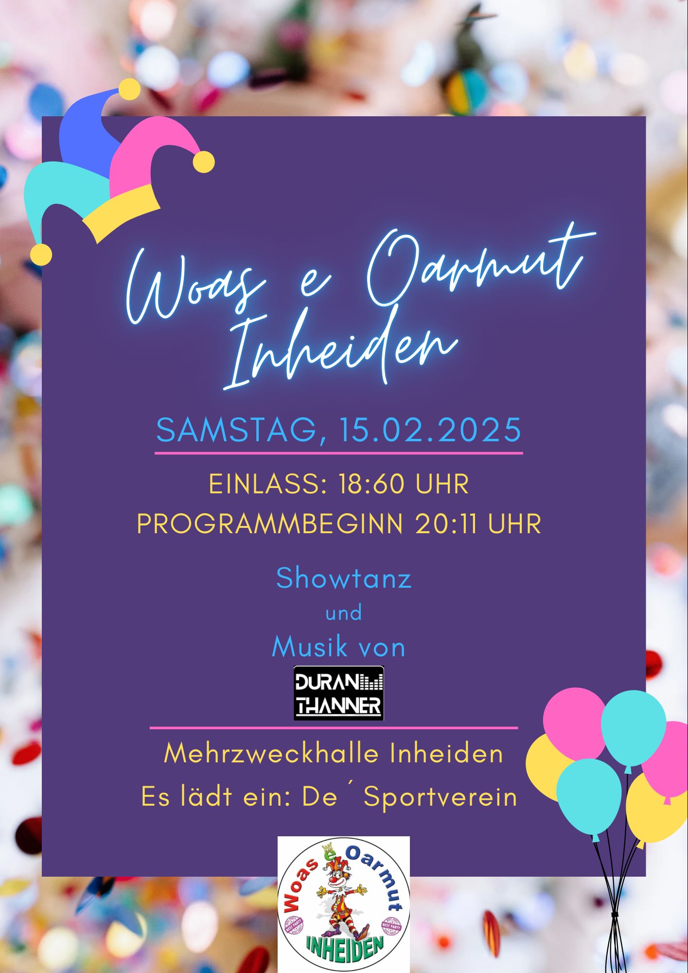 Am 15.02.2025 ist es soweit und wir eroeffnen die Faschingssaison in Inheiden mit der Oarmut.