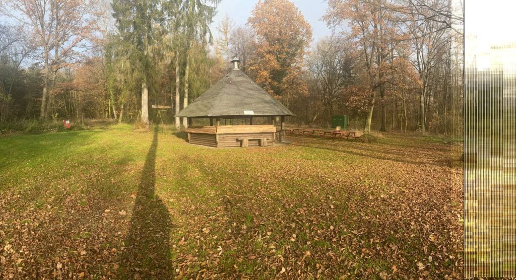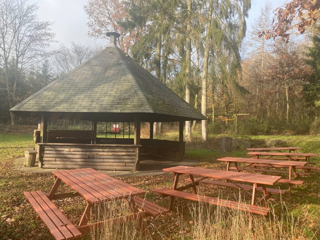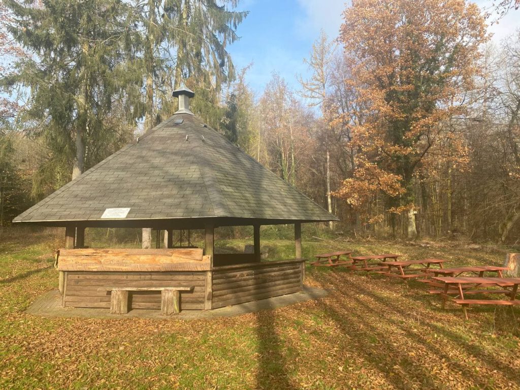 Auf der Anlage befindet sich eine Hütte mit einem gemauerten Grill und ringsum Sitzgelegenheiten.